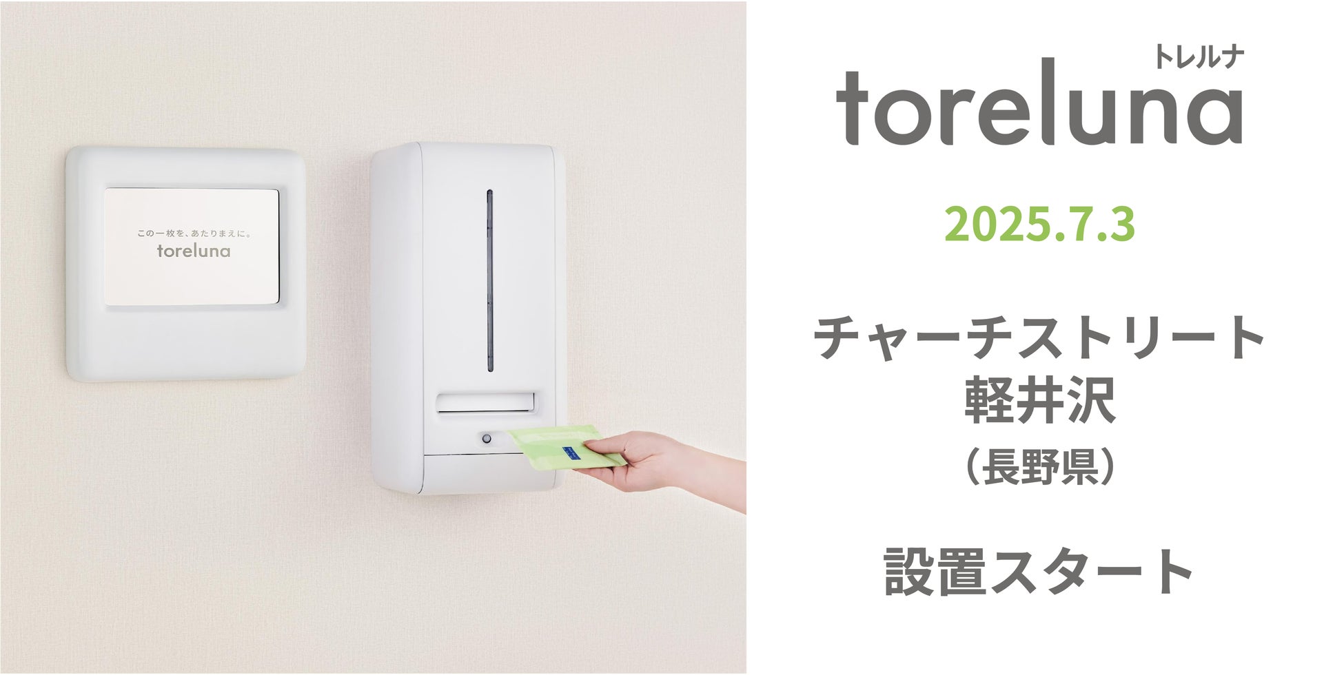 株式会社ネクイノ(大阪市北区、代表:石井 健一)は、トイレの個室で生理用ナプキンを常備し無料で提供するサービス「toreluna(トレルナ)」(以下 トレルナ)を、チャーチストリート軽井沢へ設置し、サービスの提供を開始いたしました。