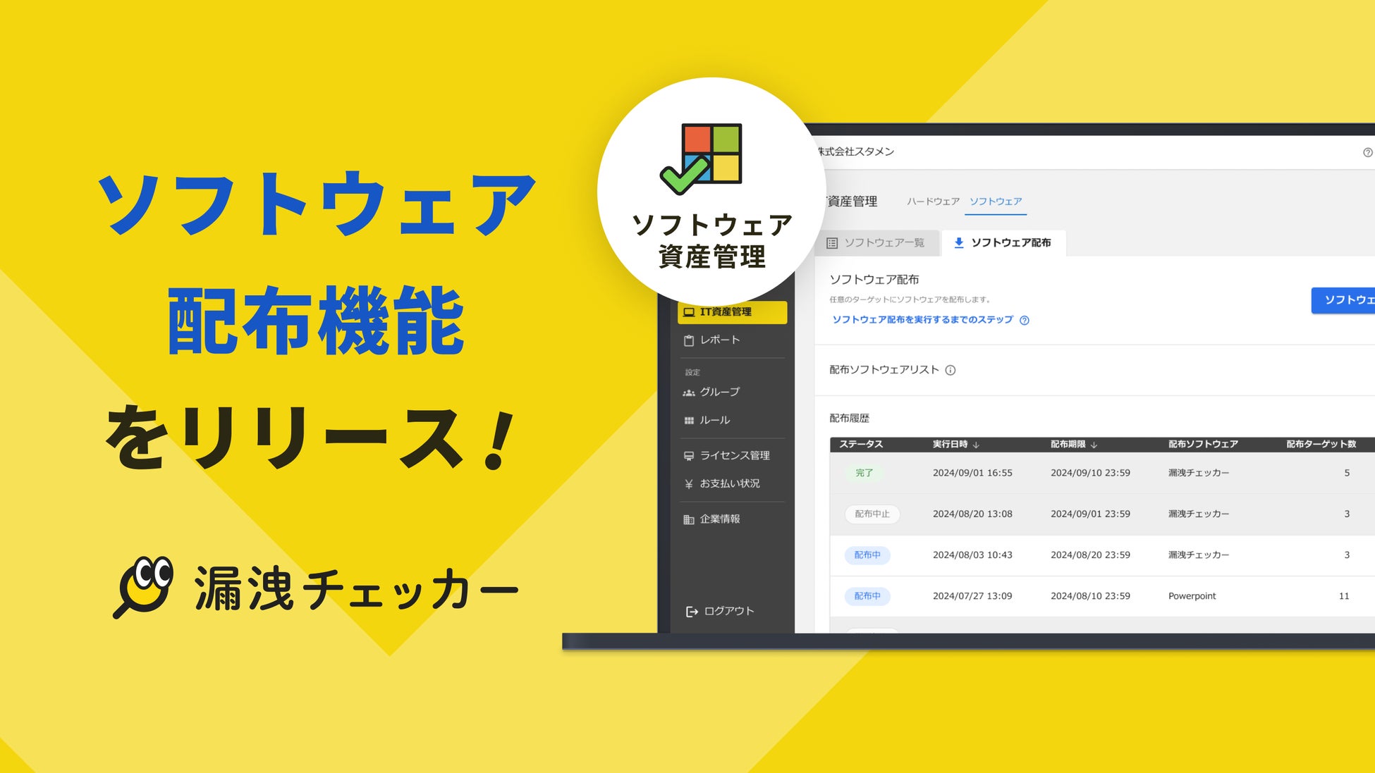クラウド型IT資産管理・ログ管理ツール「漏洩チェッカー」、ソフトウェアの配布・自動インストールを一括で行い、IT資産管理の効率化を実現する新機能「ソフトウェア配布」をリリース