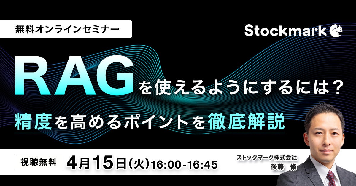 【4月15日(火) 無料セミナー】『RAGを使えるようにするには? 精度を高めるポイントを徹底解説』を開催(ストックマーク主催)