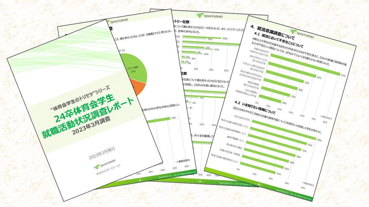 体育会・スポーツ学生のための就職活動支援サイト「スポナビ」を運営する株式会社スポーツフィールド(代表取締役:篠﨑 克志)は、24卒の体育会学生を対象とした調査レポートをリリースいたしました。