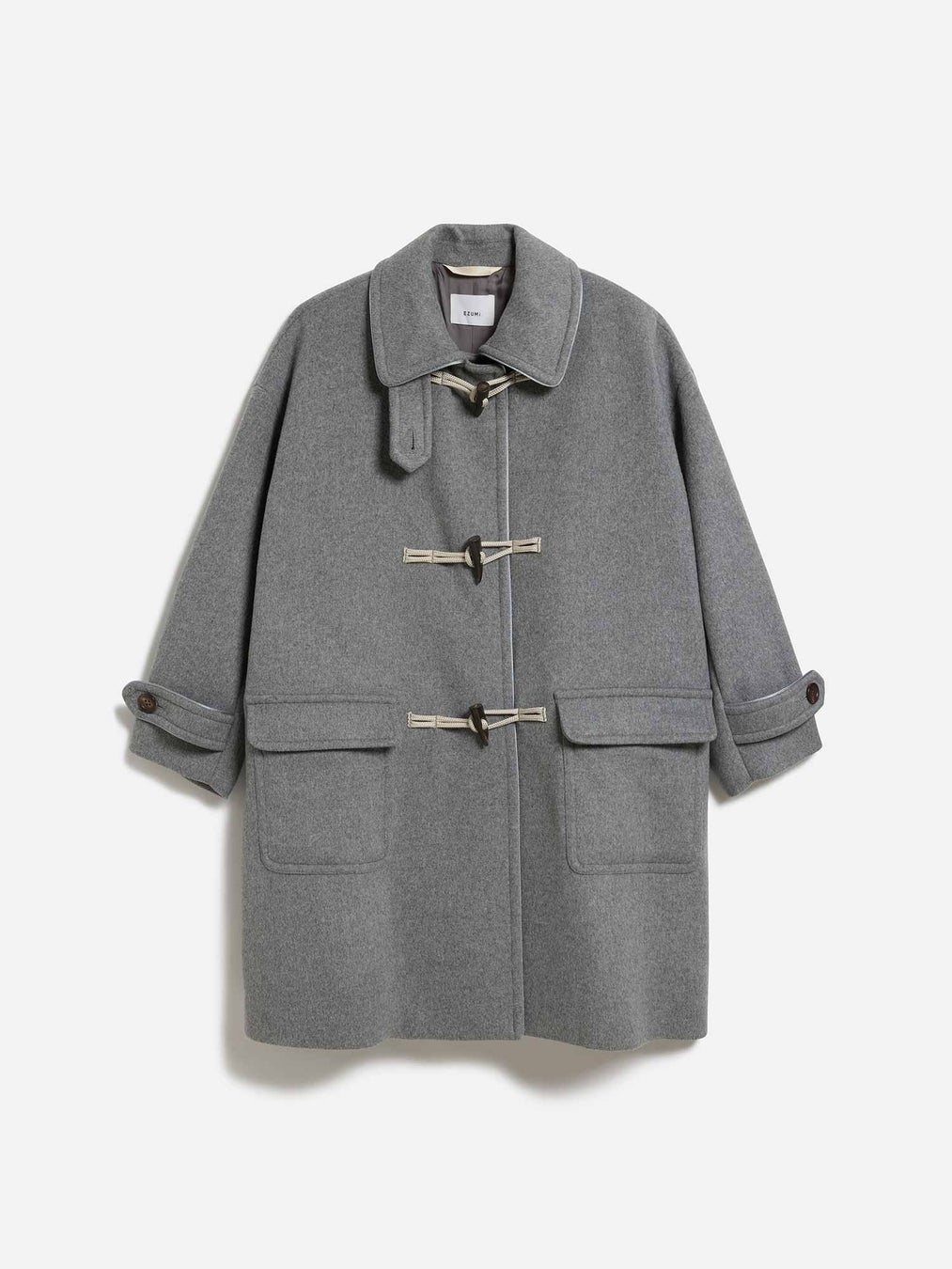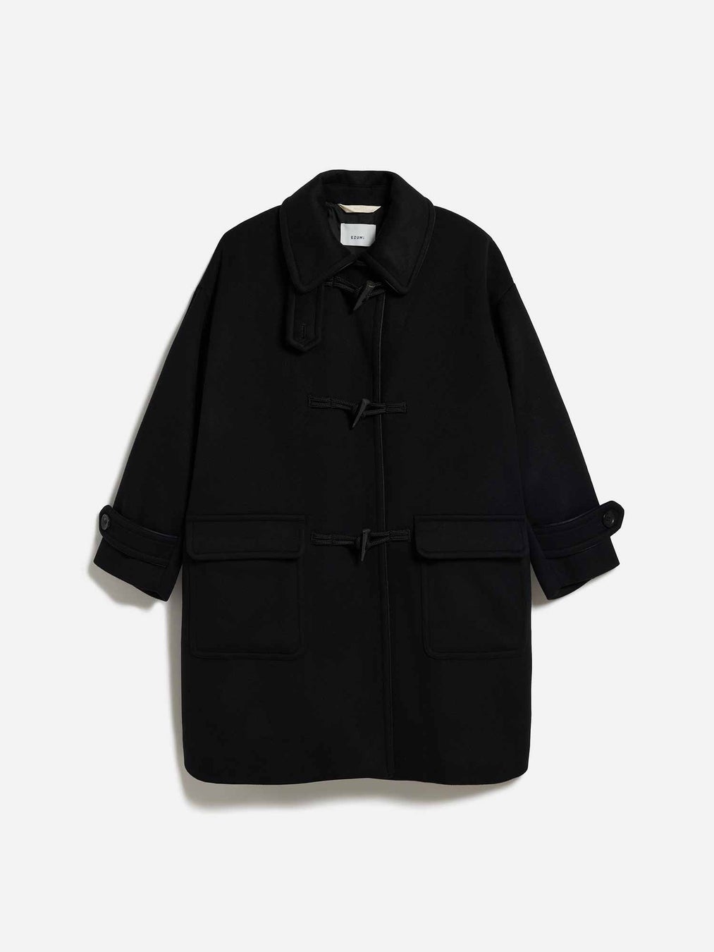 理にかなったものづくりを行う「エズミ」の江角泰俊さん。今回手がけたクラシックなダッフルコートは、ゆったりとしたドロップショルダーに、動くたびに揺れる立体的なフォルムが特徴的です。