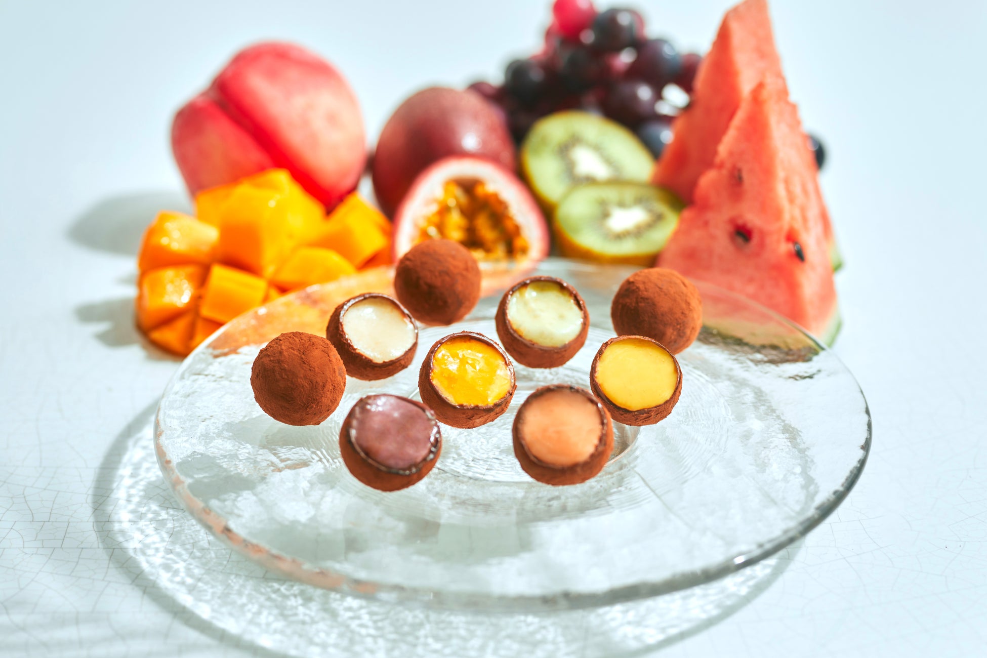 外側のチョコレートは少し力を入れただけで割れそうなほど繊細ながら、口の中でパリッと弾けた瞬間に、中から液状のチョコレートが溢れ出します。その繊細さにより、技術・素材・環境すべてが揃わなければ作れない極めて限定的な、ブランドのマスターピースともいえる一品です。「ショコラ・コキーユ」よりサマーアムールだけで登場する6種の新作!サマーコレクションが登場します。白桃、スイカ、パッションフルーツ、マンゴー、キウイ、巨峰の6種。どれも旅するメゾンで出会った国産の瑞々しい果実を使用した夏らしい味わいの「サマーコキーユ」です。驚きの食感、水分量、香りと味わいが表現された一粒をそっと指でつまんで、お召し上がりください。