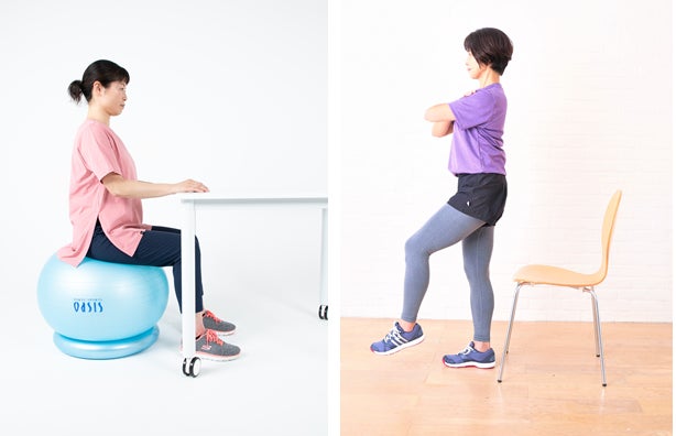 ・検証方法:事務椅子代わりにバランスボールに座り業務を行い、バランスボールを使った 簡単なエクササイズも実践していただきます。