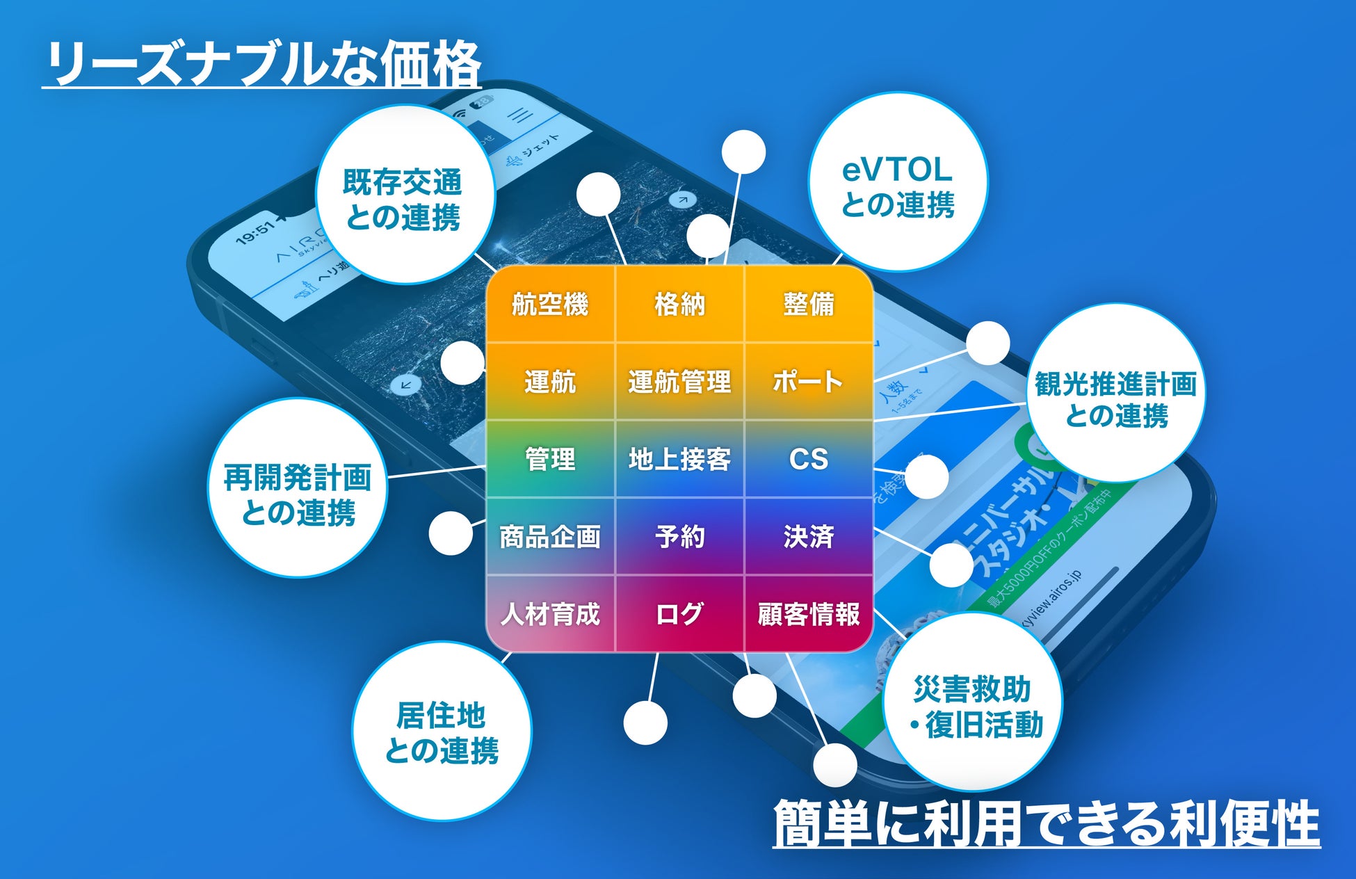 また、当社の強みであるアナログ業務のソフトウェア化を進め、運航に必要な情報をスムーズに蓄積・活用し、リアルタイムでの大規模な業務処理を実現します。これにより、お客様がエアモビリティをプライベートの車のように気軽に利用できる、新たなオンデマンド体験を提供します。