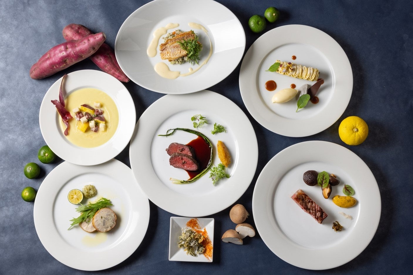伝統的なビストロ料理をスタイリッシュにアレンジしたオールデイ ダイニング「フレンチ キッチン」では、料理長の有本が徳島へ足を運び、生産者の方々と交流をしながら、その目と舌で厳選した食材を取り入れた料理の数々をご用意いたします。コースは、「阿波尾鶏」をつかった前菜や「なると金時」のポタージュからスタート。続いて、低温調理でしっとり柔らかく仕上げるジビエの鹿肉(阿波地美栄)、アニマルウェルフェアや生物多様性と環境保全、飼料の管理などさまざまな要件を満たし「JGAP牧場」に認定された農場で大切に育てられ、「安心・安全」「美味しさ」など独自の基準を満たし徳島県に認定された特別な牛肉「とくしま三ツ星ビーフ」のグリルなどが登場します。前菜からデザートまで一皿一皿に徳島県の美味しさがギュッとつまったお料理がご提供いたします。