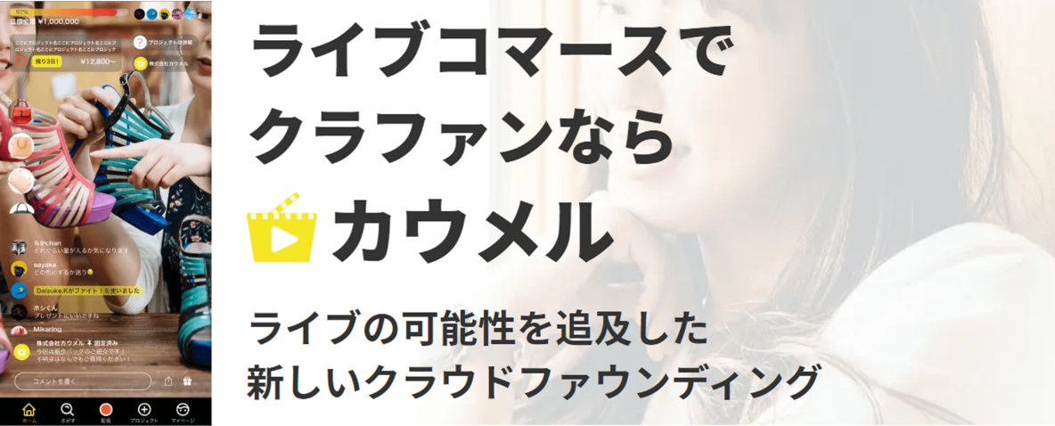 カウメルは、ライブコマースを通じて作り手が直接商品の魅力をユーザーに伝え、応援購入を募る新しい形のクラウドファンディングプラットフォームです。