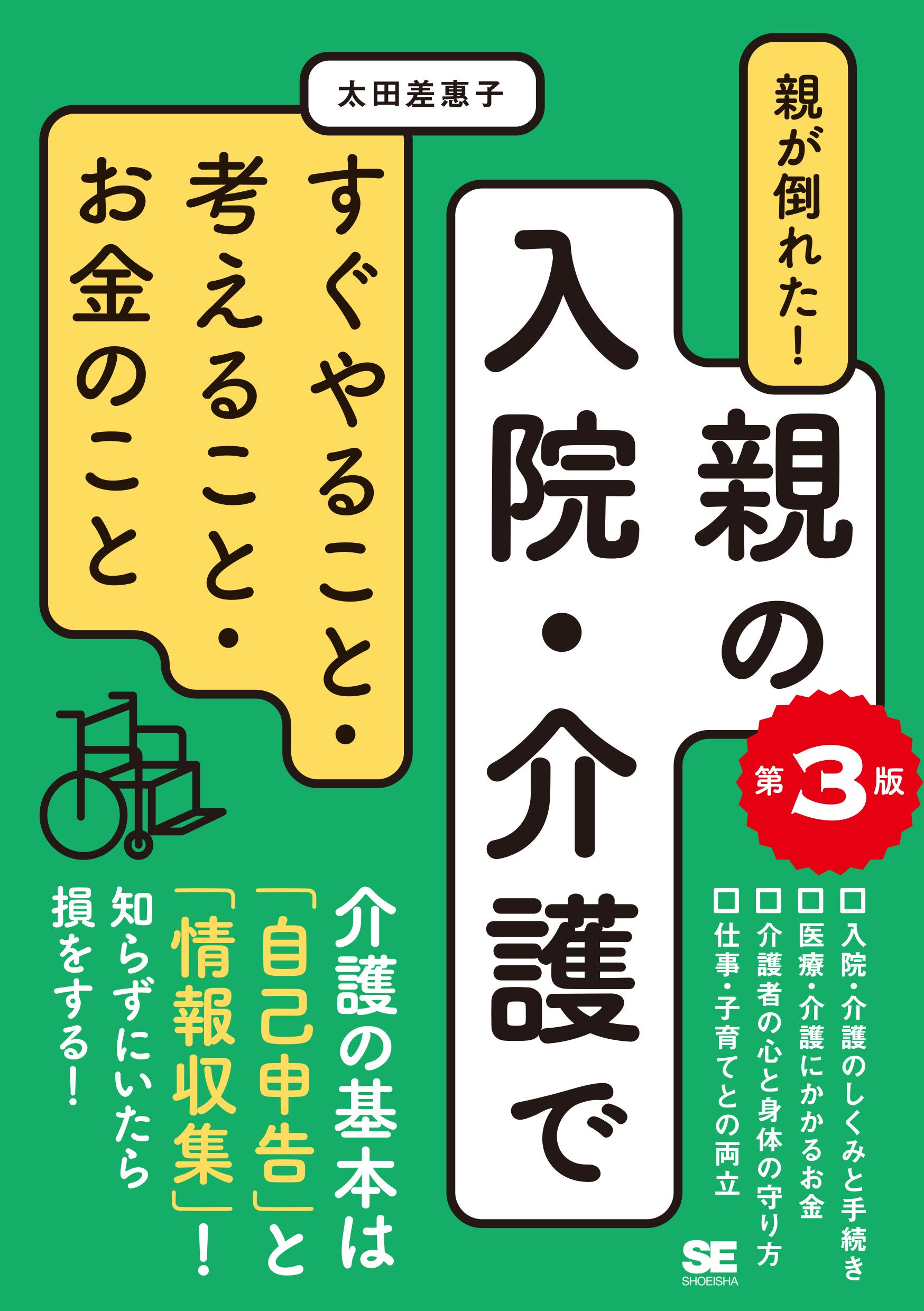 株式会社翔泳社(本社:東京都新宿区舟町5、社長:佐々木幹夫)は、書籍『親が倒れた!親の入院・介護ですぐやること・考えること・お金のこと 第3版』(太田 差惠子 著)を2022年11月8日に発売します。本書は、「親の入院・介護」に必要な知識を「短期的戦略→中期的戦略→長期的戦略」と時系列に分けてわかりやすく紹介します。第3版では、最新の法制度に対応し、昨今の事象なども取り上げます。