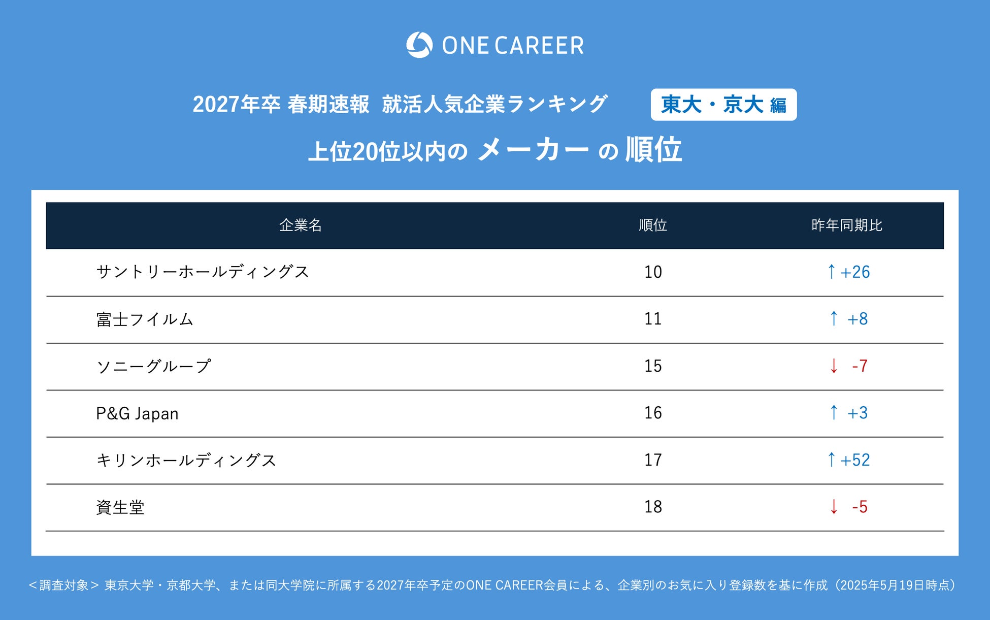 調査名 :就活人気企業ランキング【東大・京大編】27卒春期速報