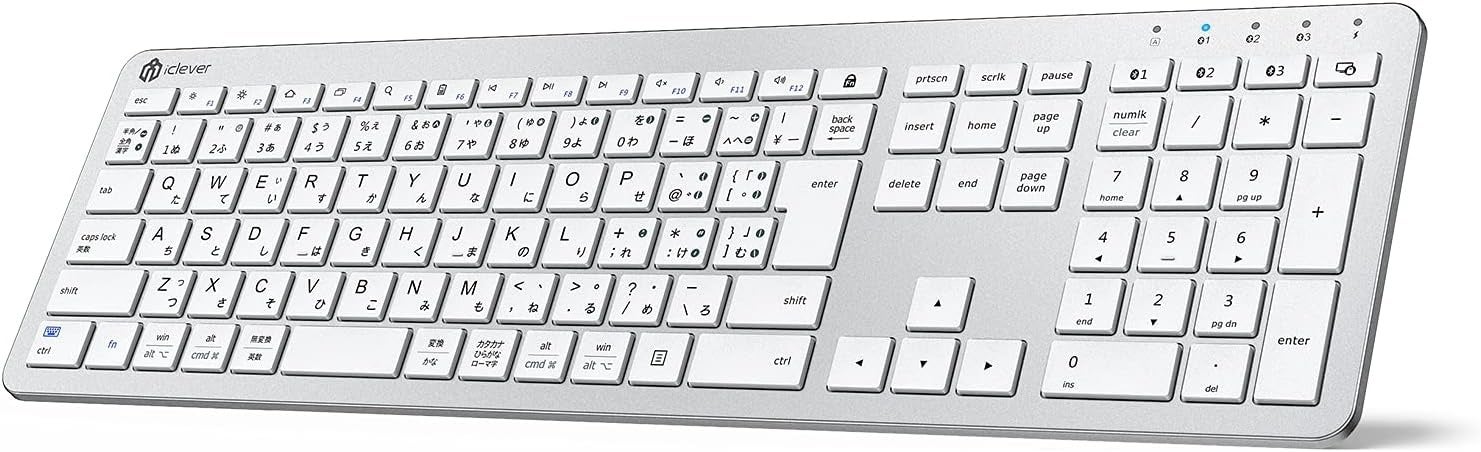 最大3台までのデバイスとマルチペアリング可能なBluetoothキーボードです。テンキーと独立した方向キーなどを搭載したフルサイズのため作業効率が向上します。洗練されたボディとシンプルでスタイリッシュなデザインが上質な空間を演出します。バッテリーは便利なType-C充電式を採用し、2時間でフル充電ができ、約90時間の連続使用が可能です。