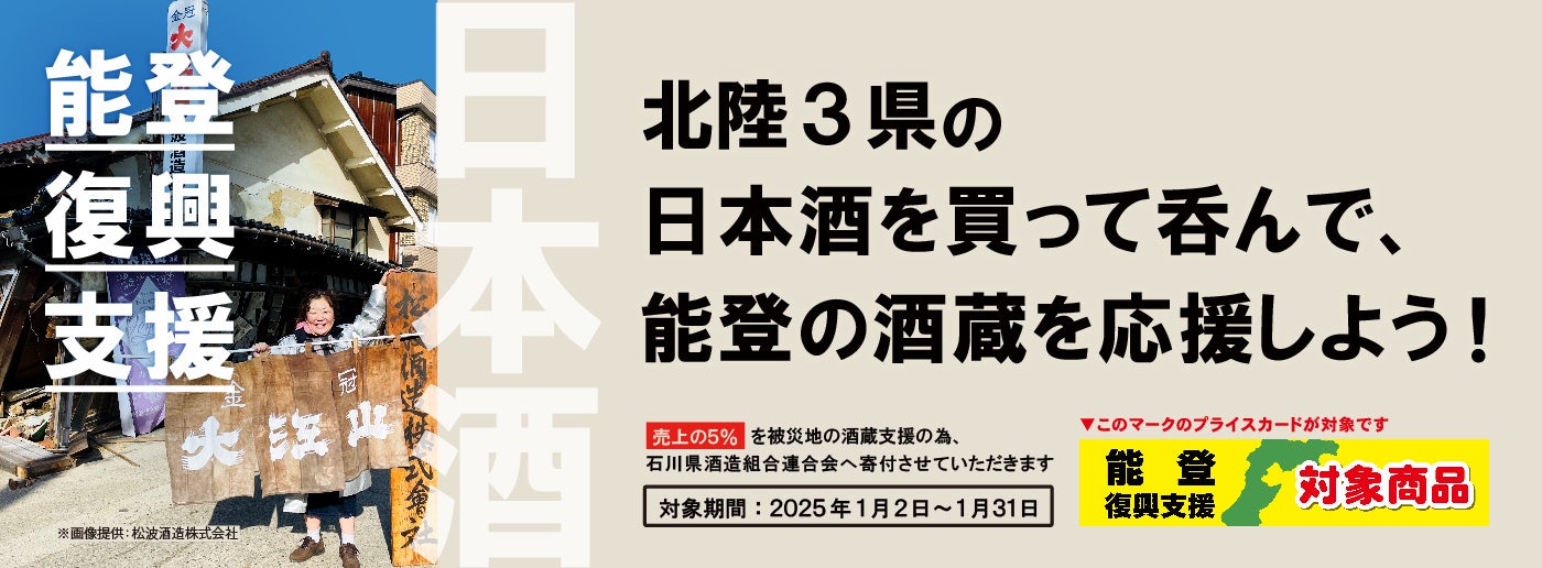 ・寄付方法:石川県・富山県・福井県対象商品の売上合計金額(本体)の5%を、被害の大きかった以下の団体へ寄付(対象商品には専用のPOPをつけて明確にわかるようにしています)