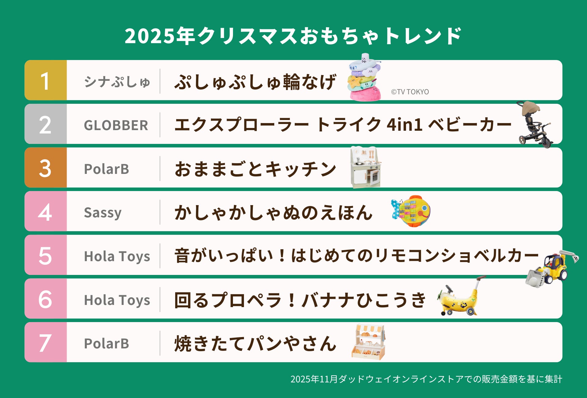 株式会社ダッドウェイ(本社:神奈川県横浜市、代表取締役社長:大野 浩人)が開催中の「クリスマス特集」は、11月のスタートからご好評をいただき、クリスマスプレゼント選びが本格化する12月を迎えました。この度、本特集で取り扱うアイテムの中から、11月の販売実績に基づいた「2025年おもちゃトレンド速報」を公開いたします!