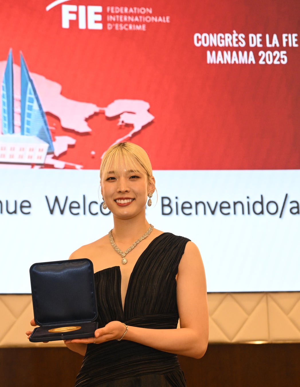 現地時間2025年11月22日(土)にバーレーン(マナーマ)で開催された、国際フェンシング連盟総会にて、女子サーブル 江村美咲(株式会社立飛ホールディングス)が個人年間王者、男子エペがチームで年間王者、となり表彰を受けました。※年間王者:ワールドランキングが最高値となった個人・団体