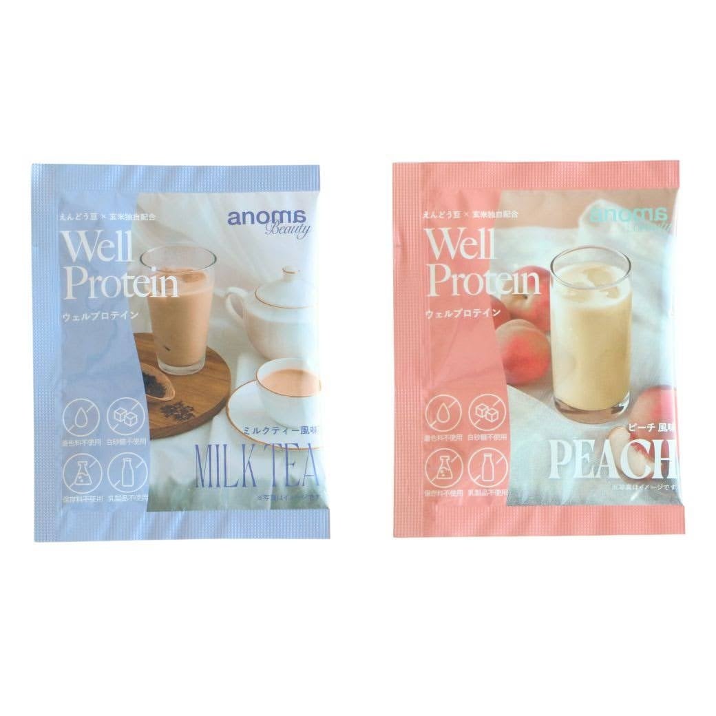 累計50万食を突破したえんどう豆を原料とした100%植物性ピープロテインブランド「anoma(アノマ)」(本社:東京都千代田区、代表取締役:荒井俊亮)は、2024年11月にモデル/タレント藤井サチさんがプロデュースする女性向けプロテイン「Well Protein」を新発売いたします。本商品は、11月に発売開始以降約3か月で累計出荷数約1,100個を突破した※「ミルクティー」※と「ピーチ」※ の個包装パッケージです。忙しい毎日を頑張る全女性に寄り添えるように、ジムやオフィス、お出かけ先、ご旅行先でも、サッと取り出せて手軽に摂取できる本商品を発売開始いたします。