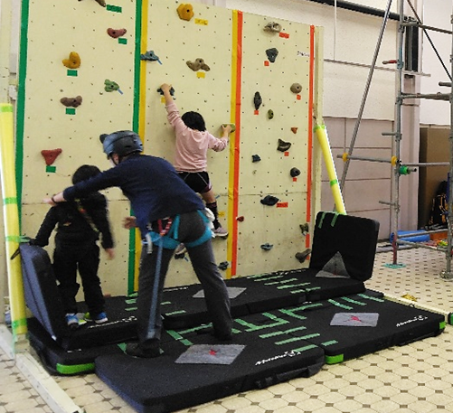 オリンピック競技種目にも採用されているスポーツクライミング「ボルダー(旧称ボルダリング)」の体験ができます。高さ2.7m、幅1.8mと3.6mの2種類のウォールに、易しい課題から難しい課題まで幅広く設定されており、初めての方から経験者の方まで楽しくチャレンジできます。