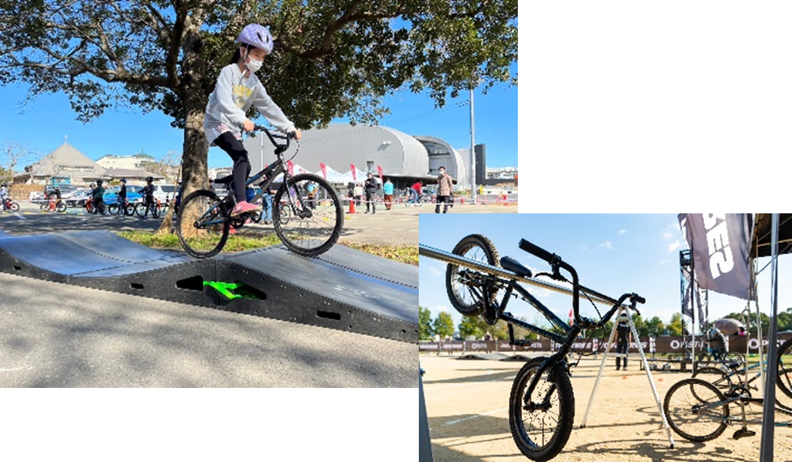 数多くある自転車競技の中から、BMXレーシング種目を体験することができます。BMXバイクに乗って、起伏のあるジャンプセクションを駆け抜け、スピードやアクションを感じてみませんか。キッズ向けにはキックバイクも走行可能です。