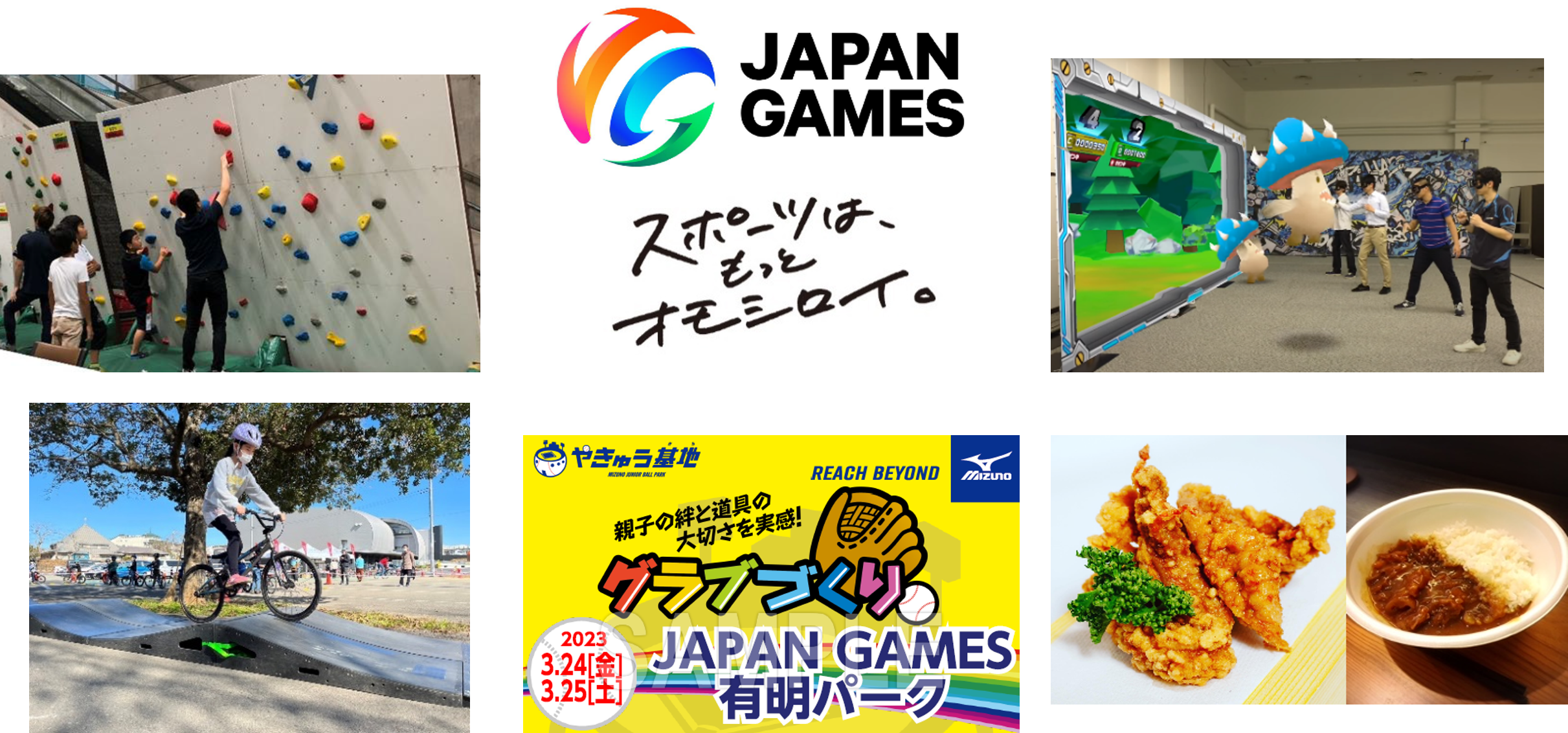 本イベントは、「JAPAN GAMES」 の認知向上と理解浸透を図るとともに、“スポーツは、もっとオモシロイ。”を体験・体感してもらう場として開催いたします。当日は、クライミングやスケートボード、パルクールなどのアーバンスポーツ等を体験できるプレーエリアの他、職業体験やJAPAN GAMES開催県ご当地フードエリアなど、楽しいコンテンツを多数ご用意しております。