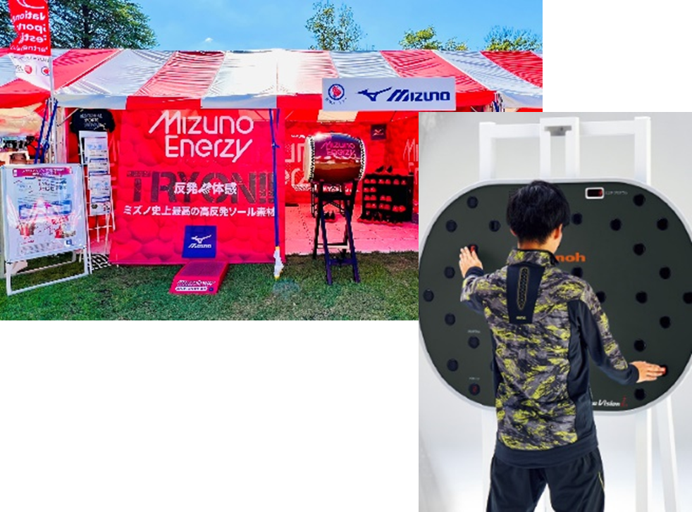 各競技のユニフォーム展示をはじめ、動体視力ゲームやミズノエナジー(高反発ソール素材)を体感いただけます。(参考:https://jpn.mizuno.com/technology/mizuno_enerzy)