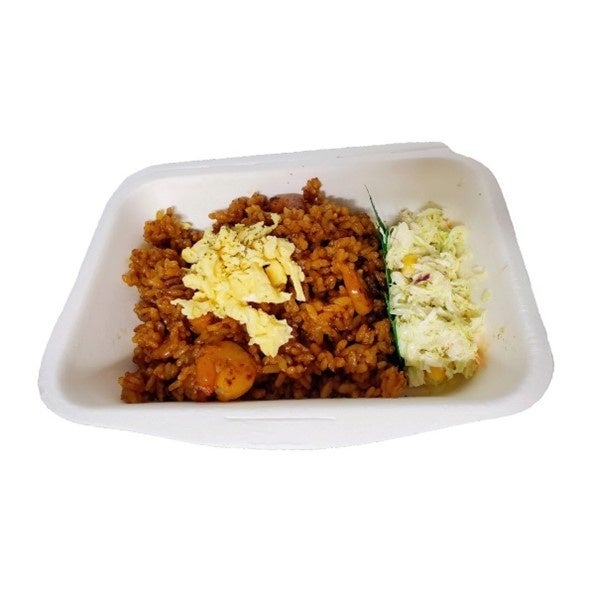 岡山名物のえびめしは、ご飯にえびなどの具を入れ、カラメルソースとケチャップを合わせたものに、スパイスをきかせたソースを使った黒い焼飯!ほんのり感じる甘さと独特の香ばしさが魅力です。