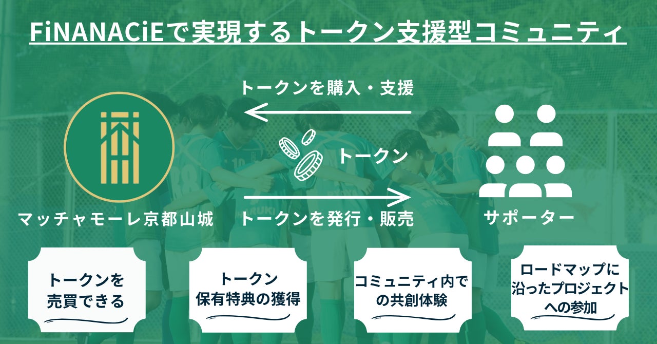 フィナンシェは、マッチャモーレ京都山城の『Jリーグ参入』と山城地域の活性化に向けて、トークン発行によるサポーター募集と共創型コミュニティ運営を支援いたします。