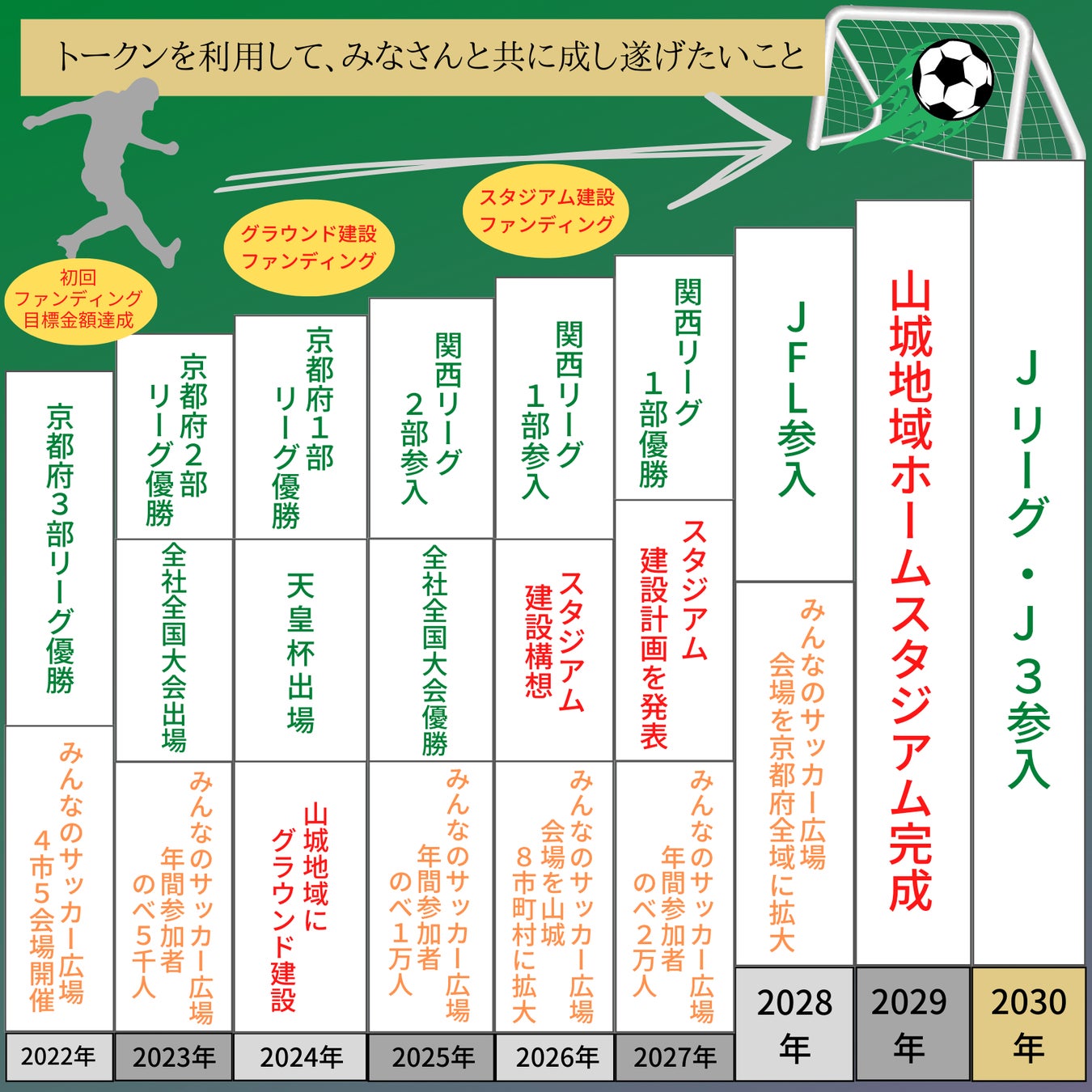 2021年4月から京都フットボールリーグに参入し、現在はJ9相当のリーグにあたる京都3部リーグに所属。2030年までのJリーグ昇格を目指して活動しています。