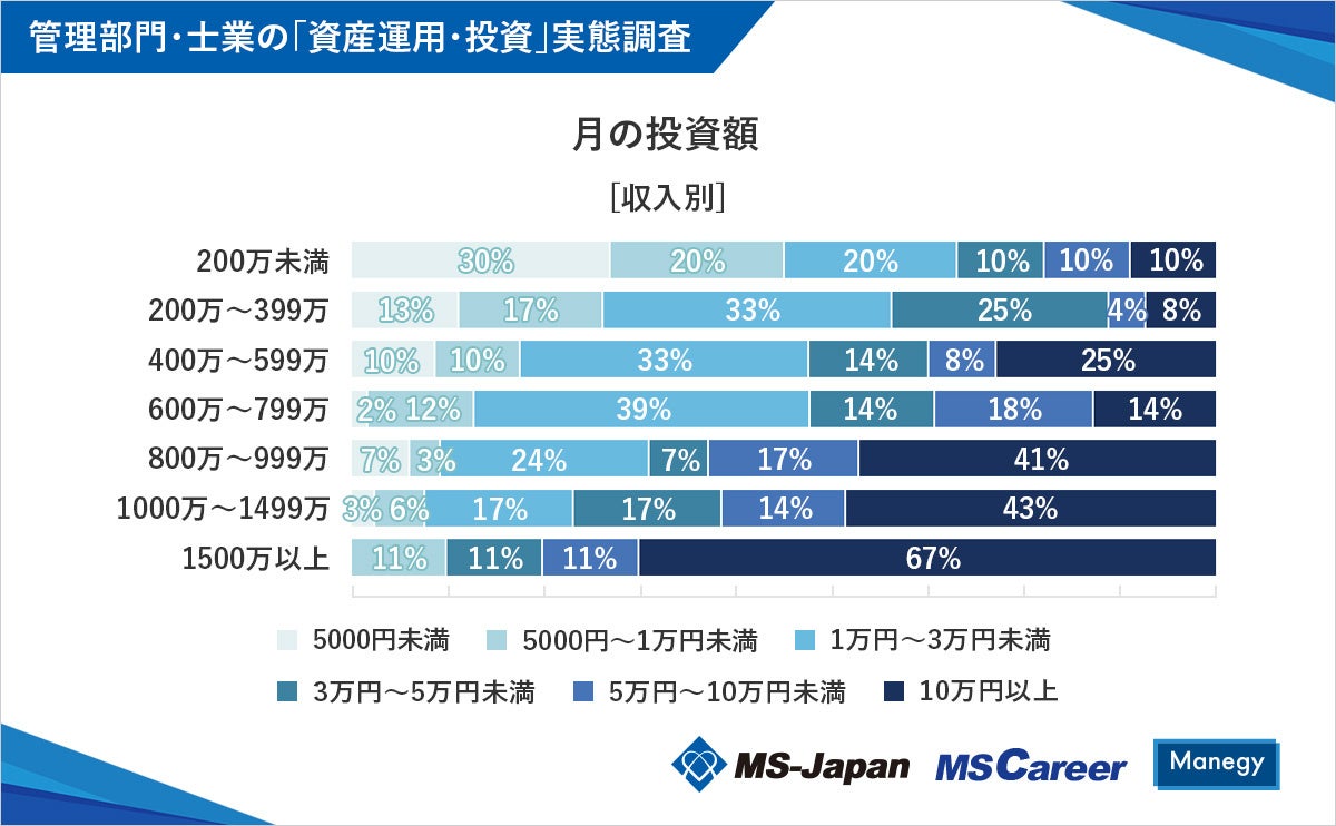 【年収700万円台までは、過半数が「月3万未満」で投資】