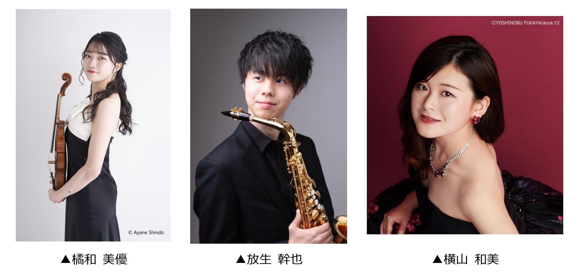 ヴァイオリン、サクソフォーン、声楽など多様な楽器を使った6名の受賞者によるコンサートが、3日間にわたり入場無料でお楽しみいただけます。