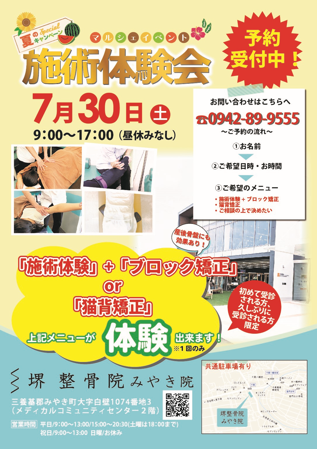 - 堺整骨院 みやき院が行う「施術体験会」について