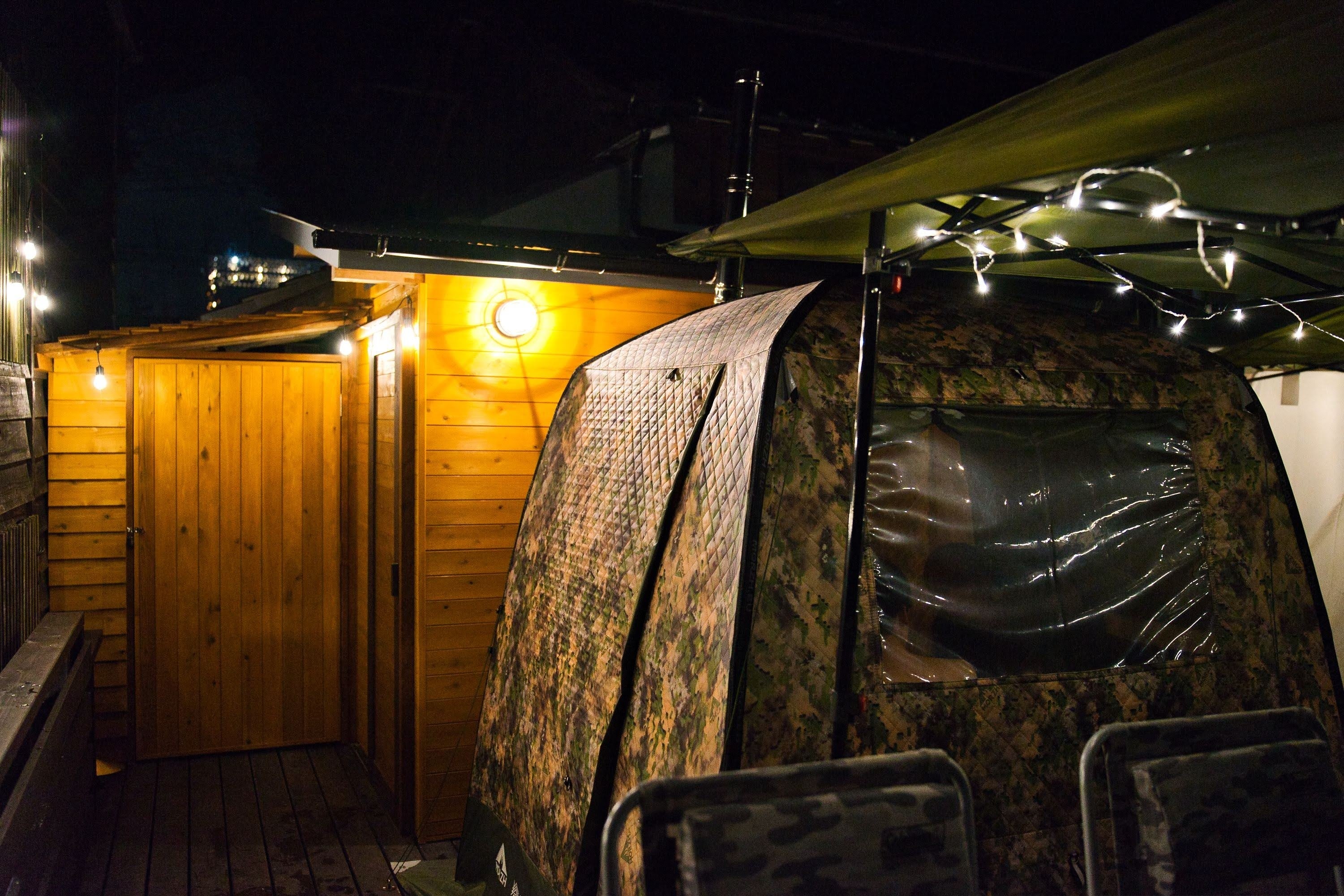 テントサウナはロシア製の【mobiba モバイルサウナ MB10A】と【MORZH(モルジュ)】の2基を設置しております。どちらも貸切でのご利用となりますので、プライベート空間でサウナをお楽しみいただけます。