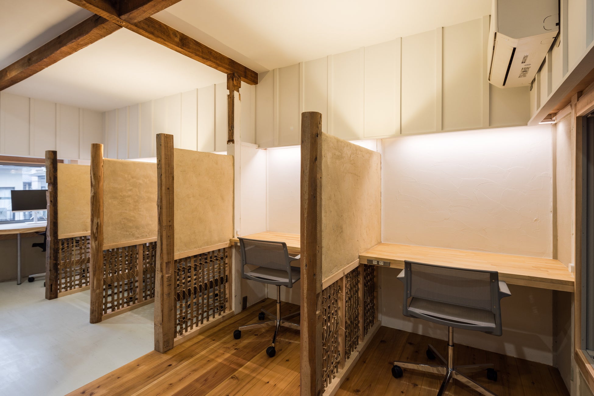 「いいオフィス浄土寺 by Coffice 」は、居心地のよさを大切にしたコワーキングスペースです。土壁やスギ材など、自然素材に包まれた空間で、おだやかな時間を過ごしていただけます。