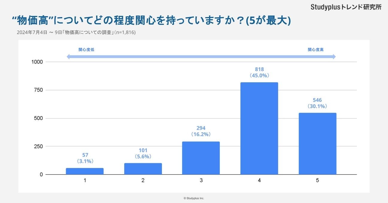 【調査項目】“物価高”についてどの程度関心を持っていますか?(5が最大、単一回答)