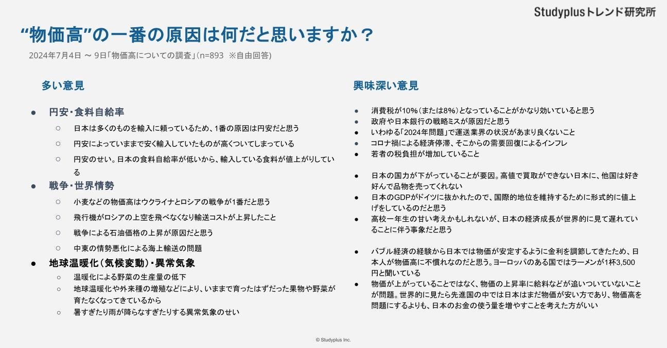 ・「物価が上がっていくこと自体は自然なことであり、日本社会がそれに対応できていないことが問題である」という回答も。
