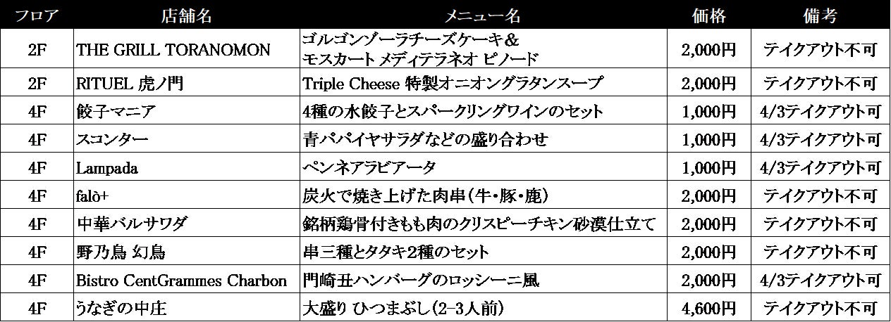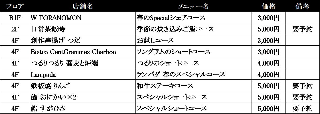 この機会に、「食」の街・虎ノ門ヒルズで忘れられない思い出を残してみてはいかがでしょうか。