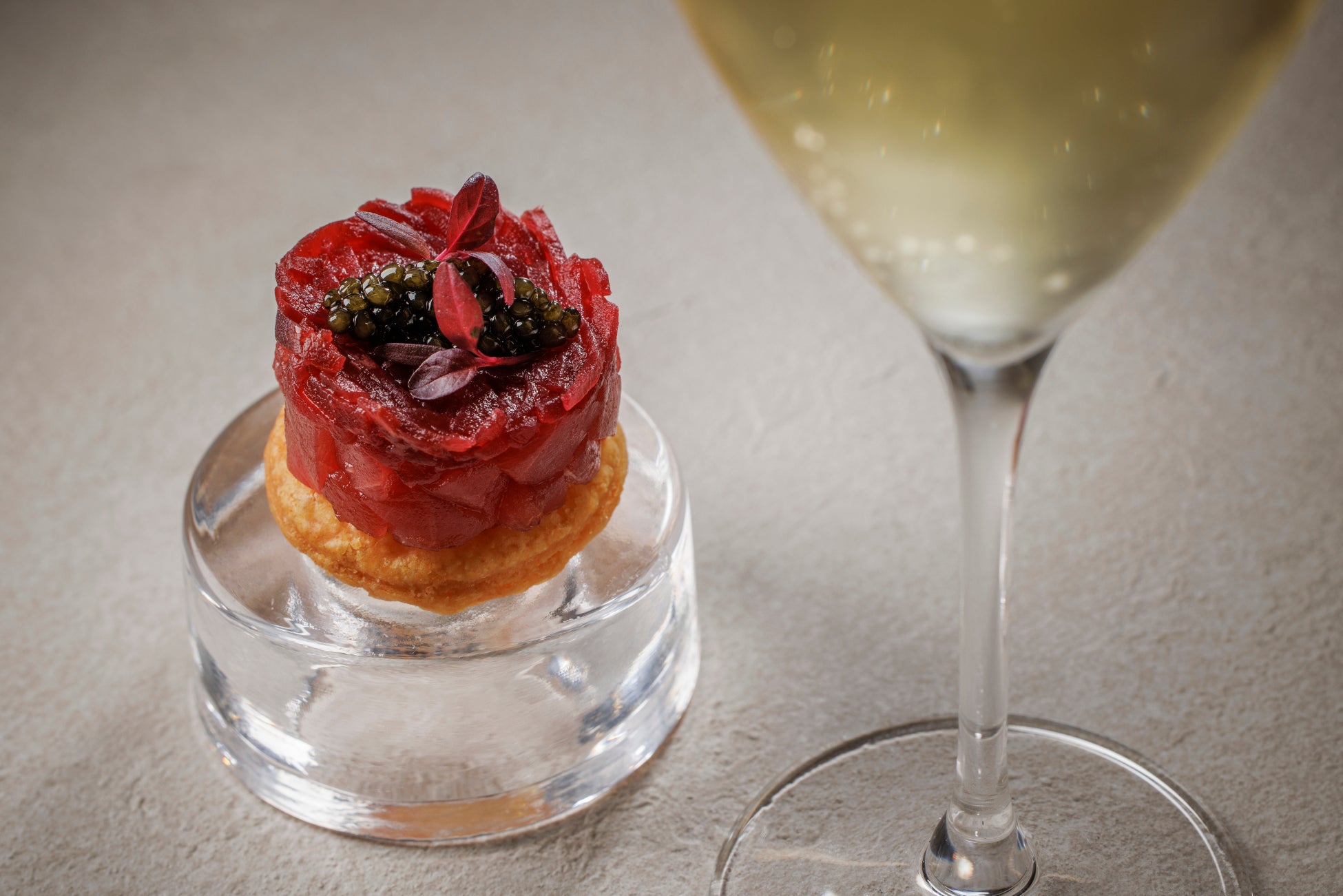 キャビアと本鮪のタルト+スパークリングワインのセット/1,000円【4/3テイクアウト可】
