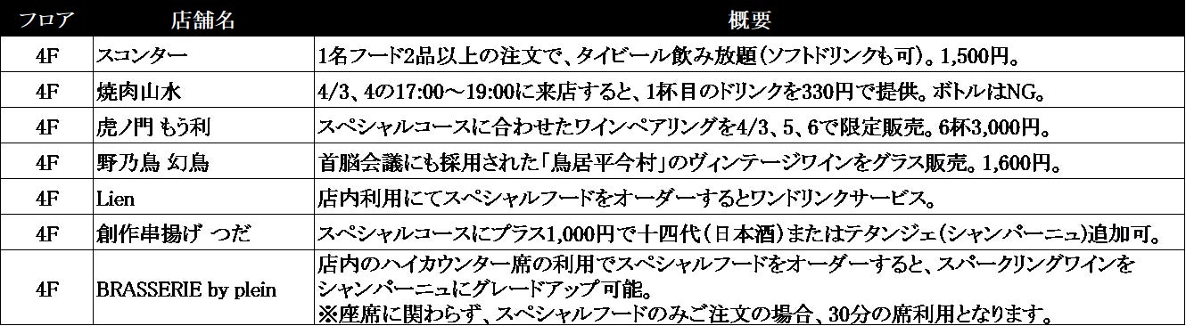 ※ドリンクは「BRASSERIEby plein」「Lampada」「カフェ&バー クロワゼ」で販売します。
