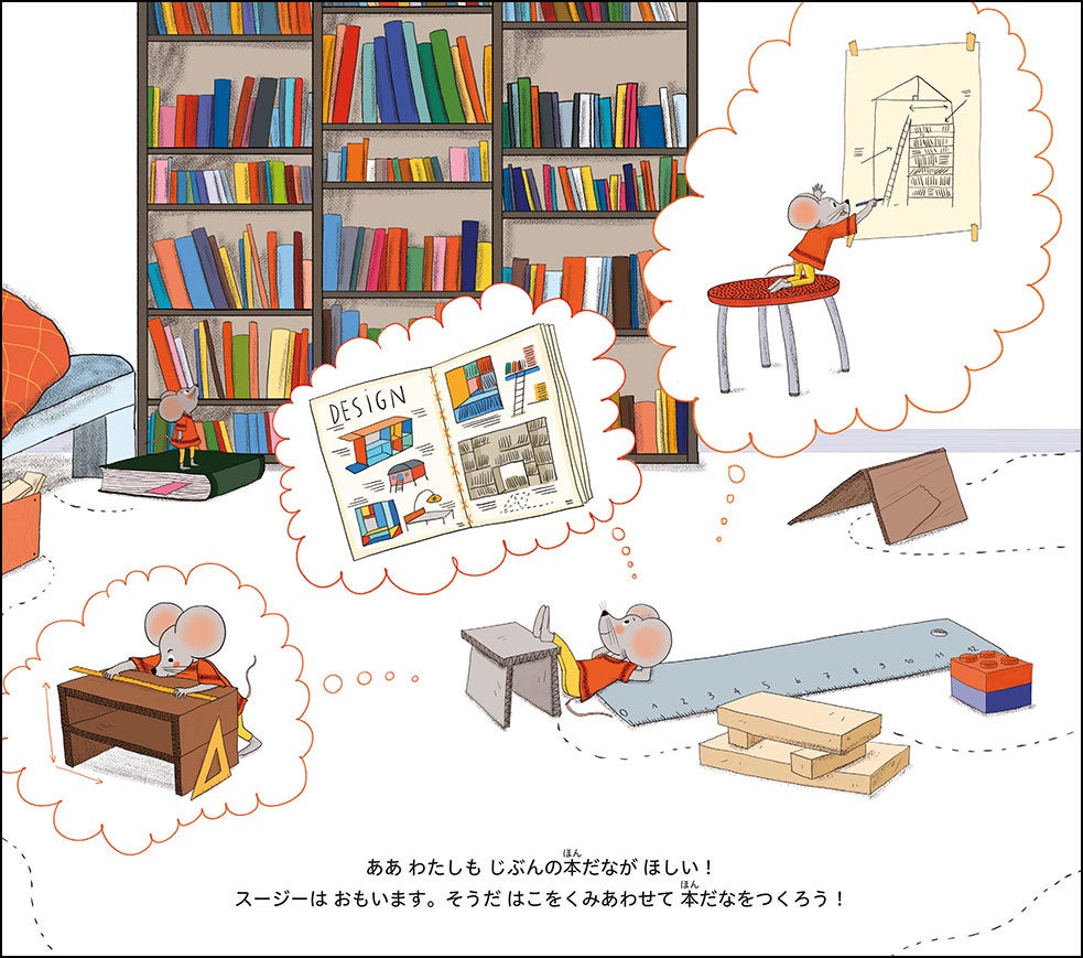 一家の部屋は本だらけ。家族が出かけたすきに、スージーは好きな本を持ち込んで…