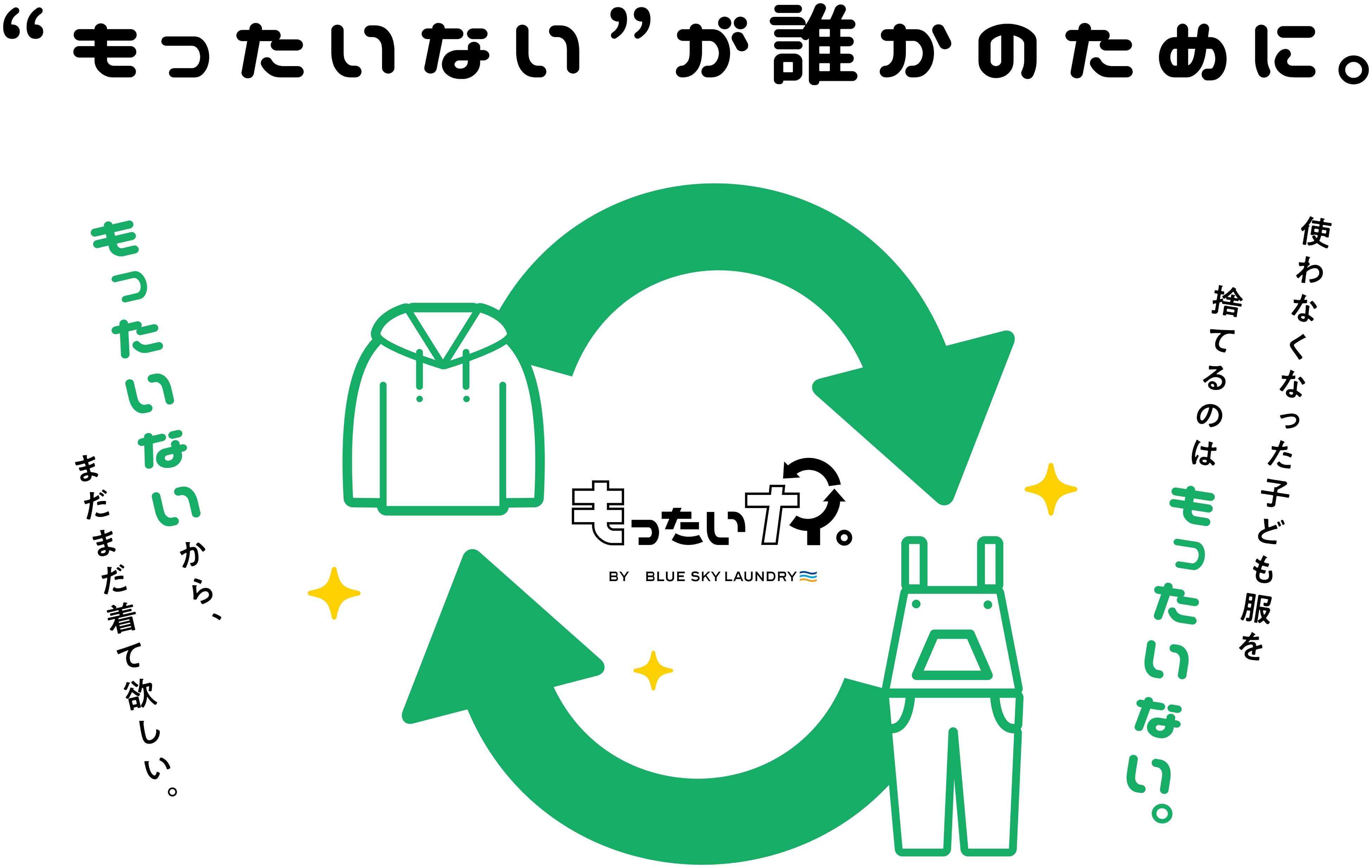 ブルースカイランドリーでは、一部店舗にて不要になった子ども服を回収し、必要な家庭にお譲りする活動を行っています。今、お住まいの地域で、「誰かの役に立ちたいが、自分には何ができるかわからない」と思われている方、着られない子ども服が多数あるご家庭などに向け【あなたのアクションが誰かのためになる】ことをコインランドリーから発信し、リユース活動を通じて、地域での助け合いや目には見えない絆を育み、ラックから衣類だけでなく想いも受け取れるような、育児への励みとなる“地域コミュニティの場”を提供することを目指しています。