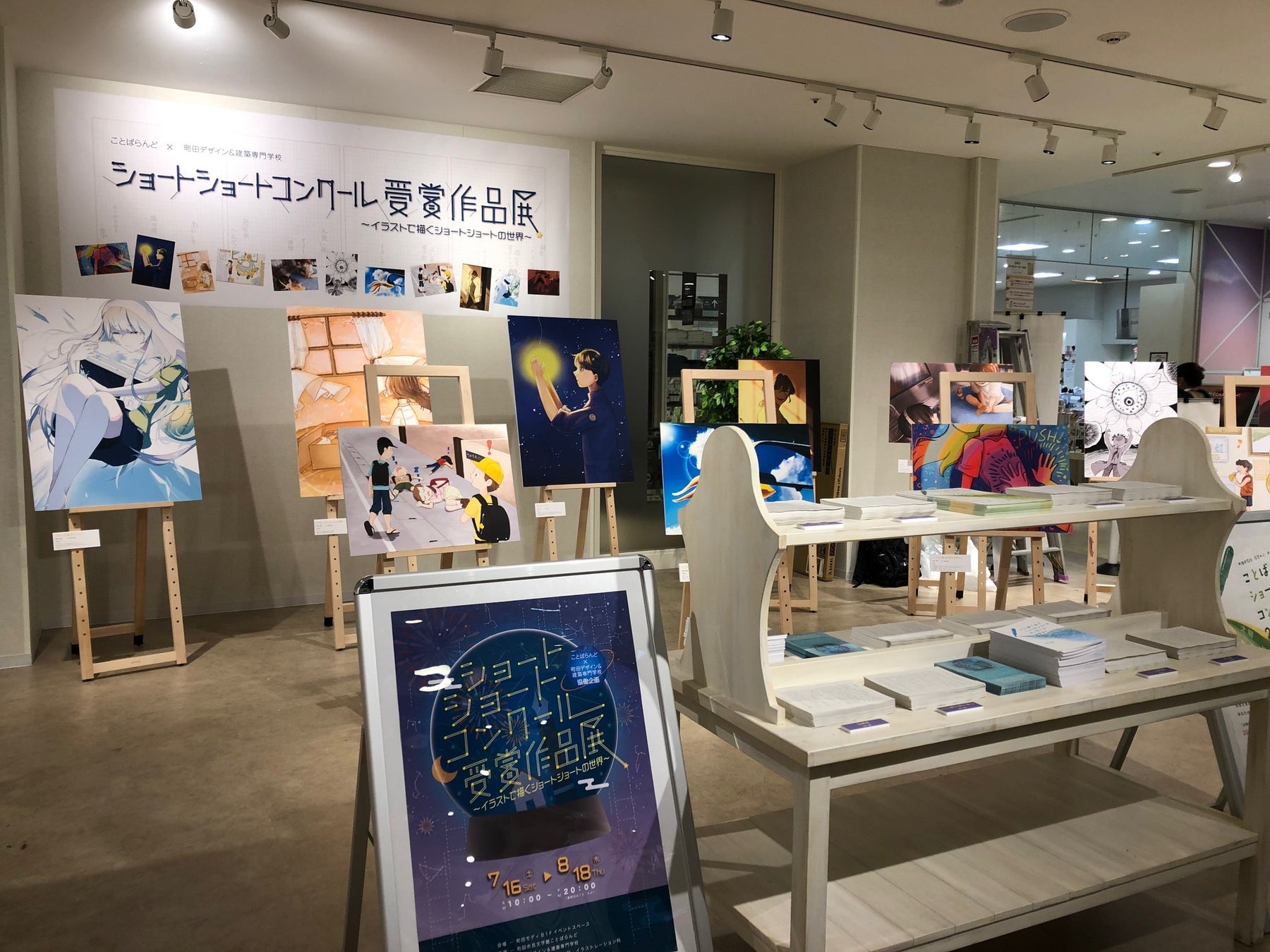 今回の受賞作品展では、展示する11編の受賞作品のイメージイラストを町田デザイン&建築専門学校の学生から提供していただいたほか、会場の表示や作品展のリーフレットにも、学生のアイディアが生かされており、視覚的にショートショートの作品の世界を楽しむことができる内容となっています。