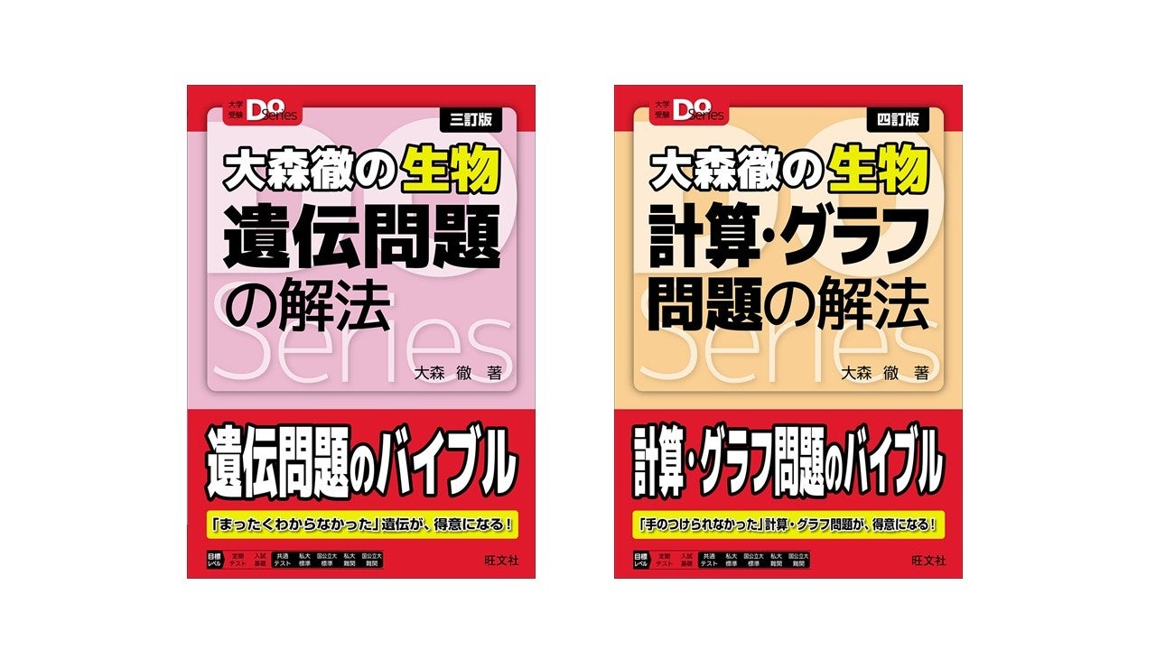 教育出版の株式会社旺文社(東京都新宿区/代表取締役社長 粂川秀樹)は、「大学受験Doシリーズ」から『大森徹の生物 遺伝問題の解法 三訂版』『大森徹の生物 計算・グラフ問題の解法 四訂版』を3月17日(月)に刊行いたしました。