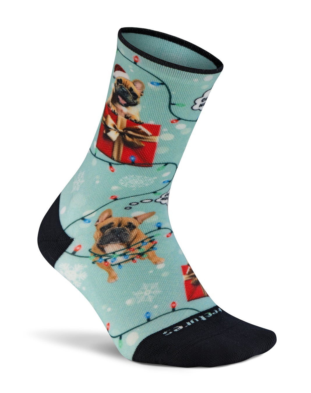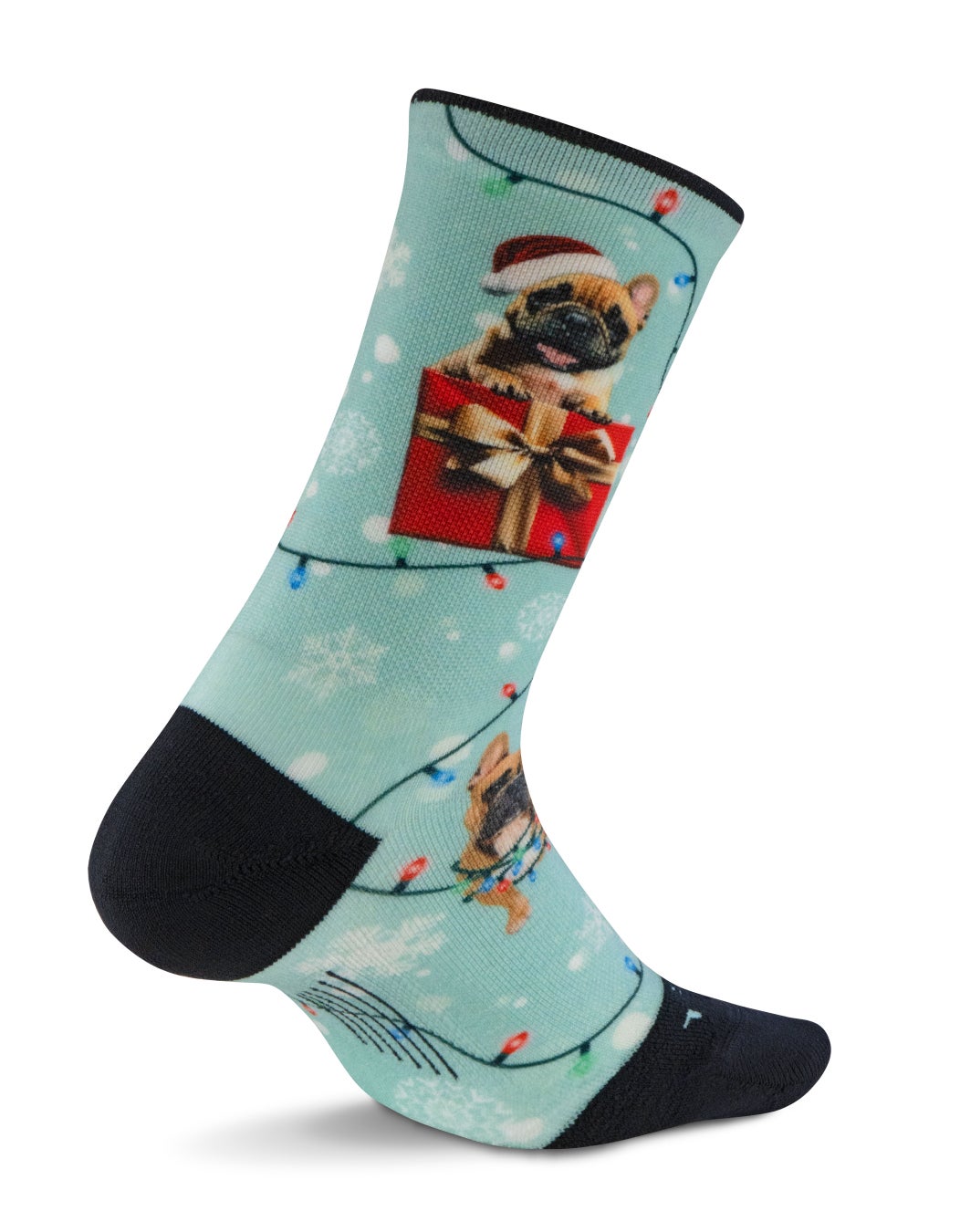 クリスマスライトやスノーフレーク、ギフトを抱えた犬のイラストをあしらい、ホリデーシーズンの特別感を演出します。明るく愛らしいデザインが足元を華やかに彩るだけでなく、快適なフィット感も兼ね備えています。