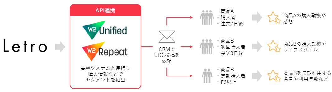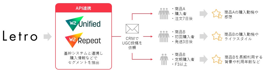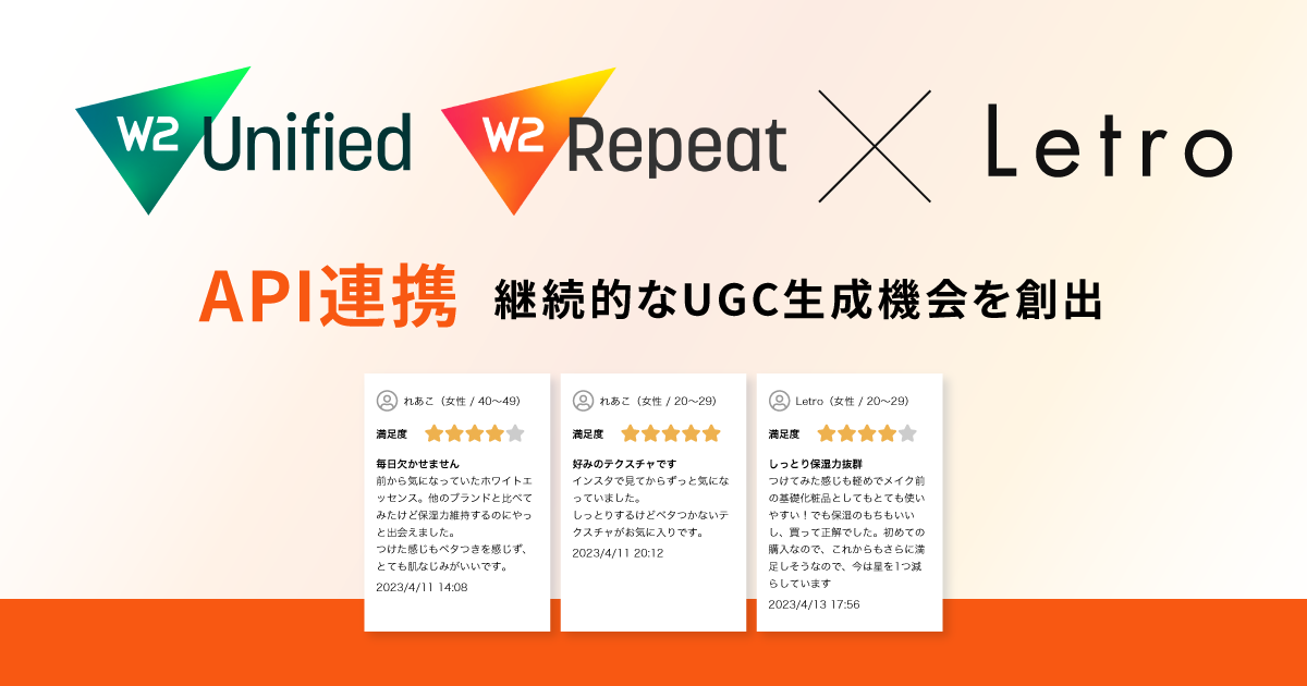 Letro、OMO/オムニチャネル対応ECプラットフォーム「W2 Unified」と D2Cリピート通販向けECプラットフォーム「W2 Repeat」とのAPI連携によりUGC生成を自動化