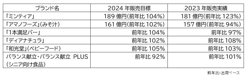 【主要ブランドの2024年販売目標と2023年販売実績】