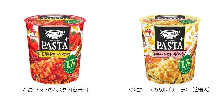 当社独自の湯戻りしやすく食べ応えのあるもちもちパスタがたっぷり(通常品の1.7倍の量※)入っている、おしゃれでおいしく、これ1品で満足感が得られる「スープパスタ」です。