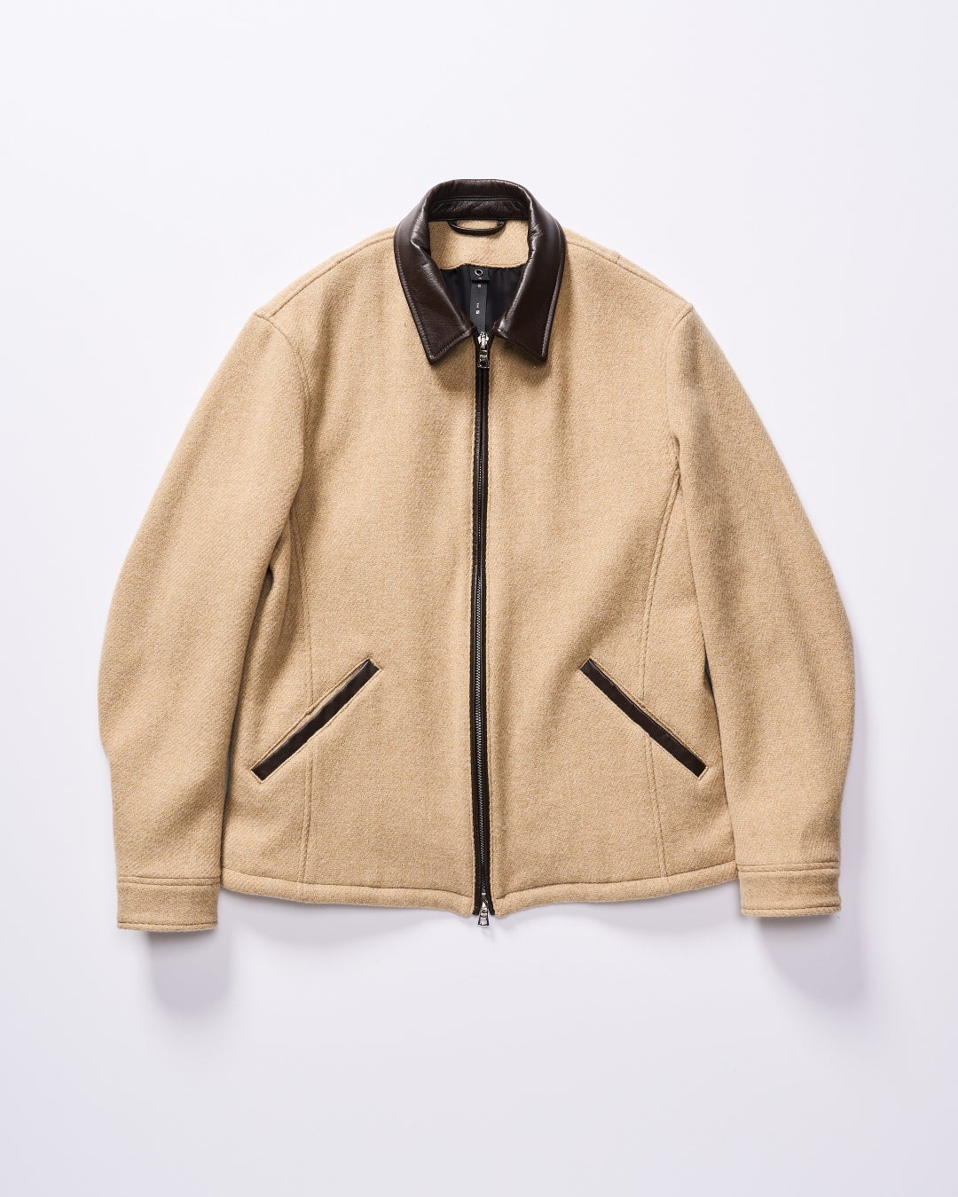 ヴィンテージのスポーツジャケットをベースに、独自のパターンメイクにより洗練された印象を与えるジップブルゾン。上品な印象を与えるツイード素材だが、ディテールに凝ることで差別化を図った一着。