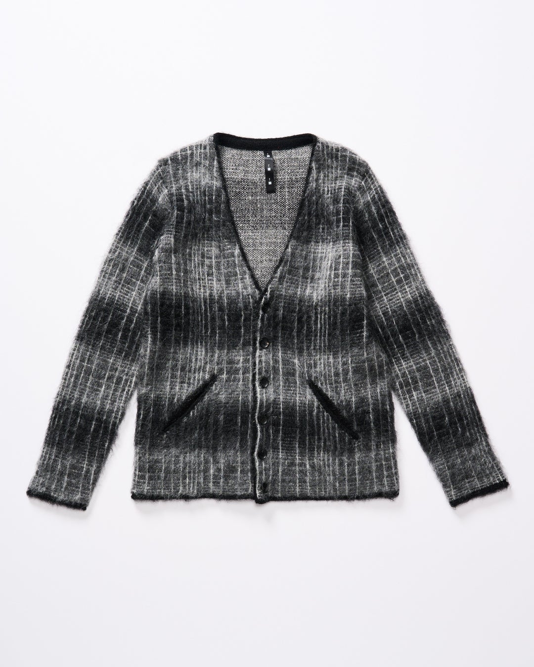 【mohair shaggy knit cardigan】色展開:blue check/black check/all black ¥44,000-