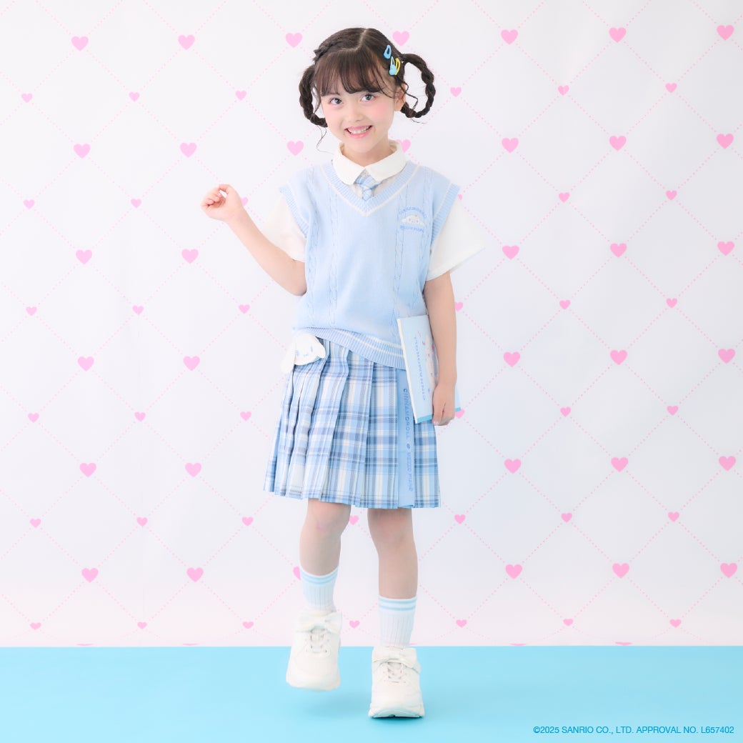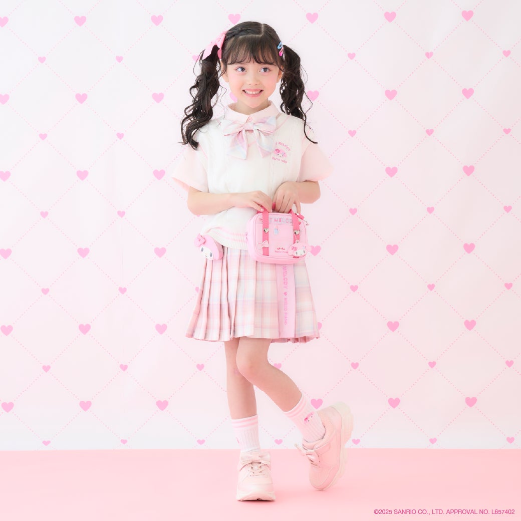 「マイメロディ」「シナモロール」をイメージしたチェック柄を使用したスカパンには、それぞれのお顔をデザインしたポーチ付き!ベスト&ブラウスセットと合わせれば制服風コーデが楽しめるアイテムでおすすめです。