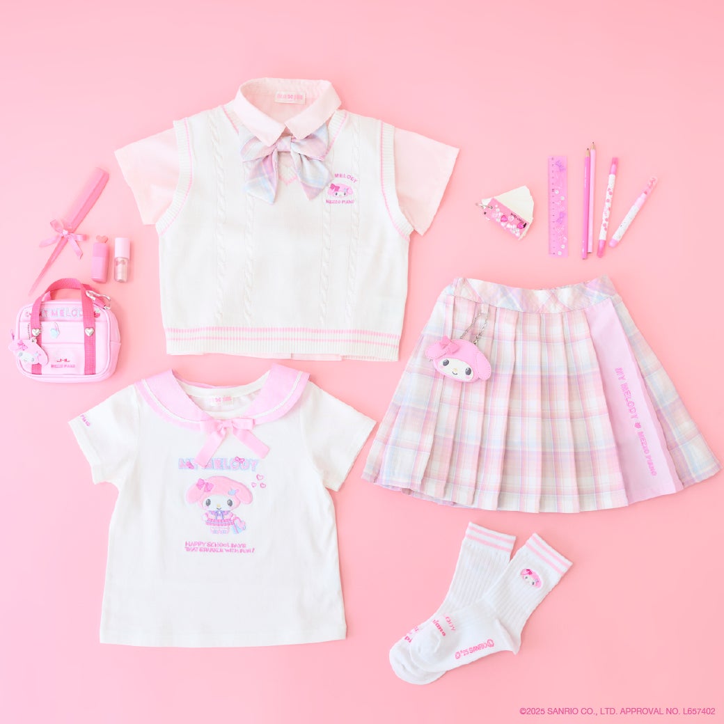 シャツブラウス・ニットベストのセットは、「マイメロディ」はチェックリボン、「シナモロール」はネクタイがついた豪華な3点セット♡