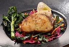 マリネしたメカジキを低温でじっくり加熱してふっくら柔らか、香り高く仕上げました。菜の花と優しい酸味のテクス・メクスコールスローを彩りよく添えて。