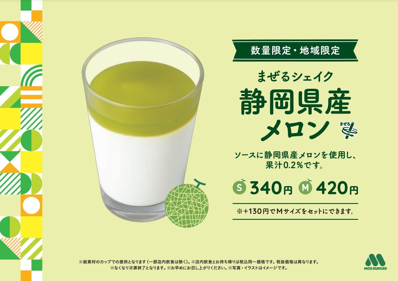 ●「まぜるシェイク 静岡県産メロン」(Sサイズ:340円 Mサイズ:420円)