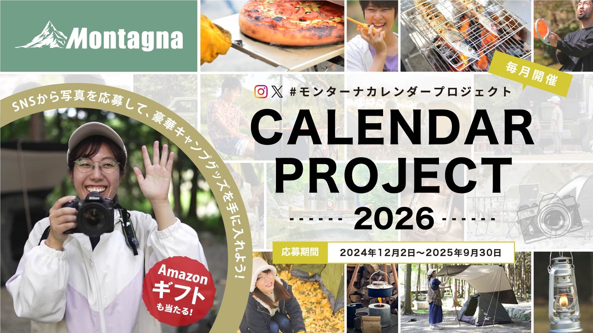 株式会社ハック(本社:大阪府東大阪市、代表取締役:有山哲也)が運営する、アウトドアブランド「Montagna(モンターナ)」は、アウトドアの魅力を広く発信する取り組みとして、今回で4回目を迎える、SNS参加型のフォトコンテスト「#モンターナカレンダープロジェクト 2026」を実施します。風景や子供、愛犬の写真など、アウトドアだけではなく幅広いジャンルの写真を大募集!