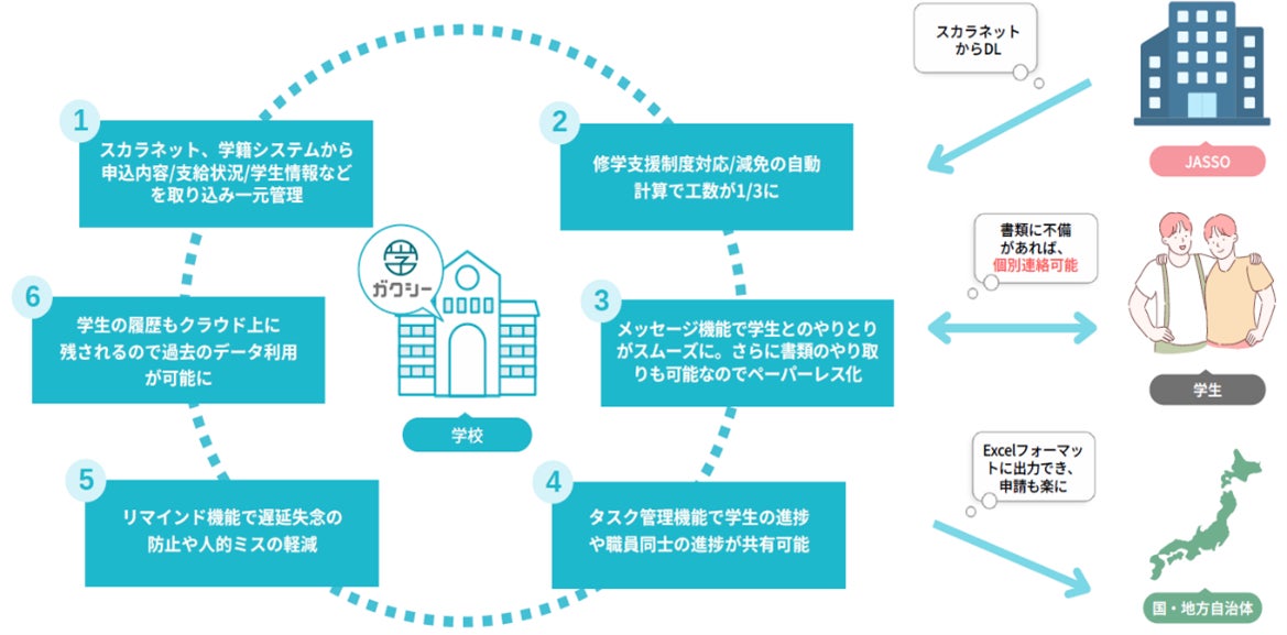 株式会社オリエントコーポレーション(本社:東京都千代田区、代表取締役社長:飯盛 徹夫、以下:オリコ)は、株式会社ガクシー(本社:東京都港区、代表取締役:松原 良輔、以下:ガクシー)と提携し、大学や専門学校などが行う奨学金業務を効率化するクラウド型奨学金運営管理システム「ガクシーAgent」と、奨学金運営業務のオンライン化を実現する「ガクシーBPO」の導入支援を開始いたしました。